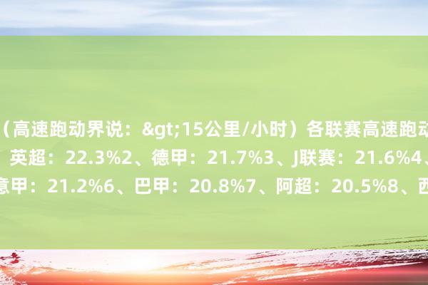 (高速跑动界说:>15公里/小时)各联赛高速跑动距离占比TOP10:1、英超:22.3%2、德甲:21.7%3、J联赛:21.6%4、法甲:21.5%5、意甲:21.2%6、巴甲:20.8%7、阿超:20.5%8、西甲:20.4%9、墨超:19.5、沙特联:19.2% 体育集锦