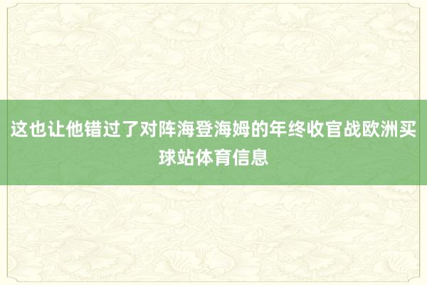 这也让他错过了对阵海登海姆的年终收官战欧洲买球站体育信息