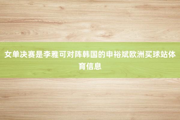 女单决赛是李雅可对阵韩国的申裕斌欧洲买球站体育信息
