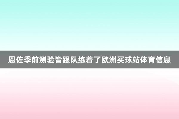 恩佐季前测验皆跟队练着了欧洲买球站体育信息