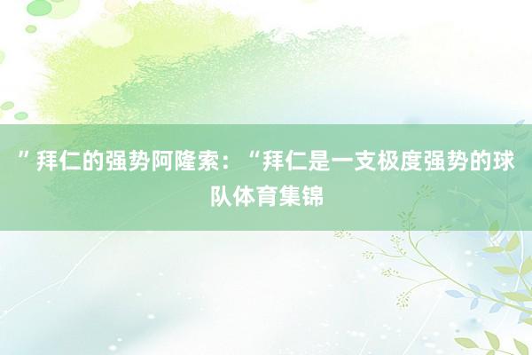 ”拜仁的强势阿隆索:“拜仁是一支极度强势的球队体育集锦