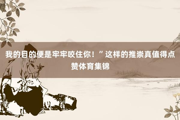 我的目的便是牢牢咬住你!”这样的推崇真值得点赞体育集锦