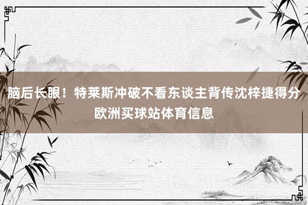 脑后长眼!特莱斯冲破不看东谈主背传沈梓捷得分欧洲买球站体育信息