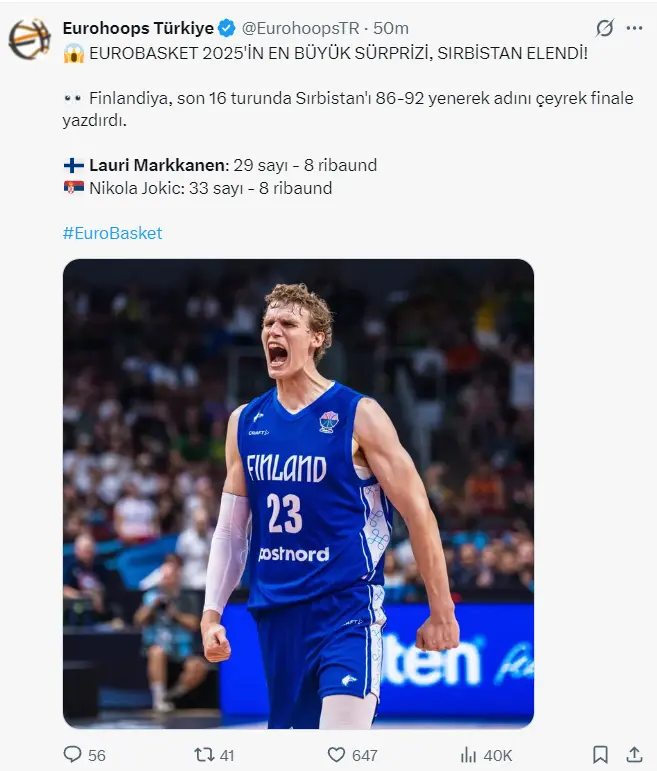 论硬实力芬兰男篮与塞尔维亚男篮相距甚远,塞尔维亚男篮的中枢约基奇是NBA第一东谈主,而芬兰男篮的中枢马尔卡宁在NBA仅仅准全明星级别,塞尔维亚的威望竖立也比芬兰更强,可篮球场等于发生古迹的场地。