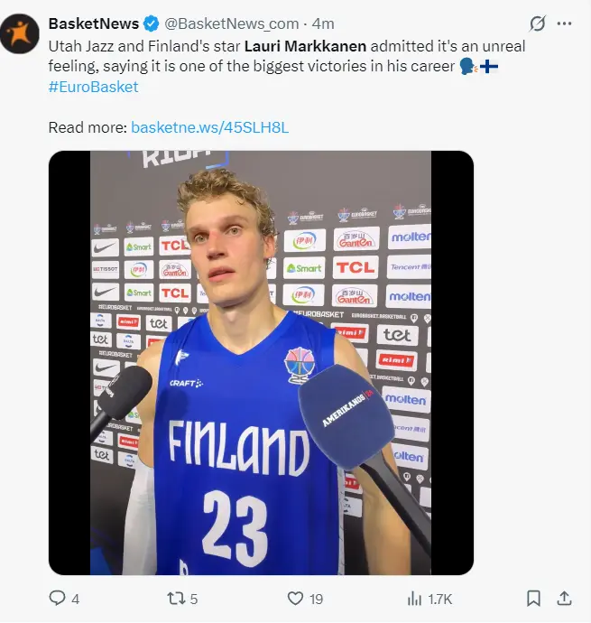 欧洲杯是1935年运转举办,芬兰男篮是在1939年运转参与欧洲杯,以前这86年里芬兰是第一次流通两届欧洲杯皆踏进八强之内,这是因为马尔卡宁这位确切北境之王才创造的古迹。