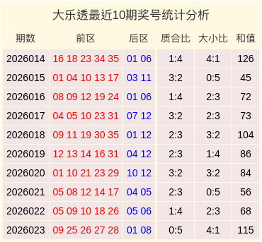 大乐透第2026024期号码参考