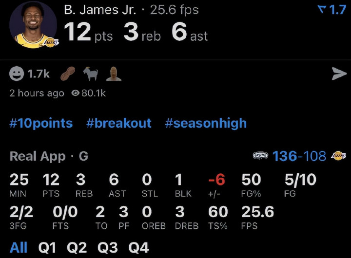 布朗尼的推崇可圈可点,替补约25分钟,投篮10中5,以50%掷中率孝顺12分3板6助1帽全面数据,单场得分为赛季新高(此前9分),助攻数平糊口记载。