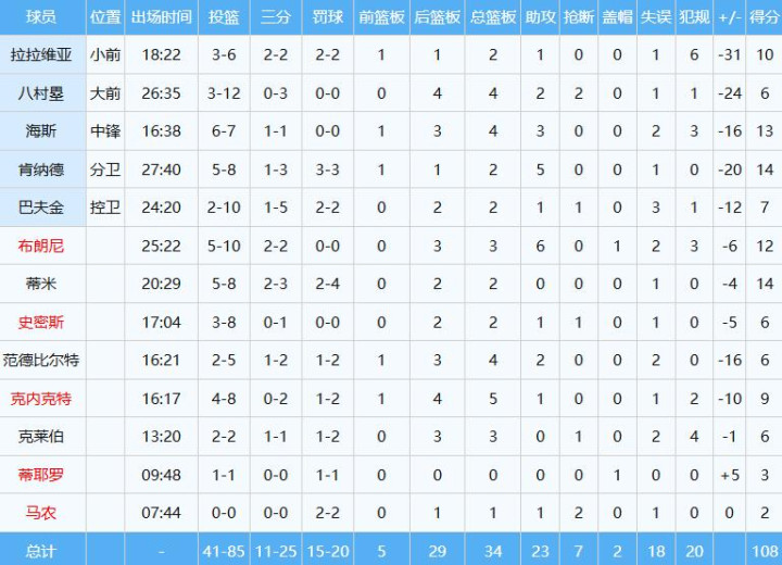 既然文班亚马如斯大杀四方,当然就评释了莫得东契奇&里夫斯&詹姆斯的湖东说念主在马刺眼前根蒂莫得还手之力,108-136大比分落败。